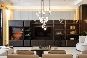 The wall unit in the LUCCA collection is a sophisticated blend of functionality and modern design, handcrafted in Türkiye. Featuring sleek cabinetry, open shelving, and a bold circular focal point, it combines storage with an artistic statement. Its dark wood finish and clean lines create a striking yet harmonious addition to any contemporary living space.