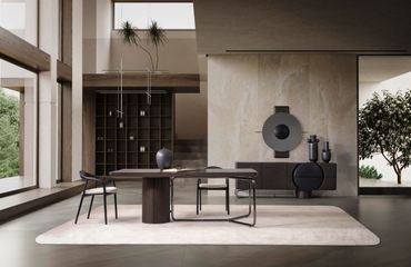 The table in the LUCCA collection is a masterpiece of contemporary design, crafted with precision in Türkiye. Its bold geometric structure and dark wood finish exude sophistication, while the sleek metal accents add a modern touch. Perfectly balancing form and function, this table elevates any living or dining space with its timeless elegance.