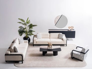 The MILANO Sofa Set combines contemporary elegance with a bold design, featuring a striking contrast between its structured frame and soft, inviting upholstery. Its unique aesthetic and attention to detail make it a statement piece for modern living spaces, offering both style and comfort.