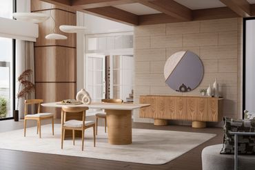This elegant dining table features a warm oak wood base with a softly curved design and a smooth tabletop. Handcrafted in Turkiye, the MILANO OAK Table seamlessly blends minimalist aesthetics with durability for a welcoming dining experience.